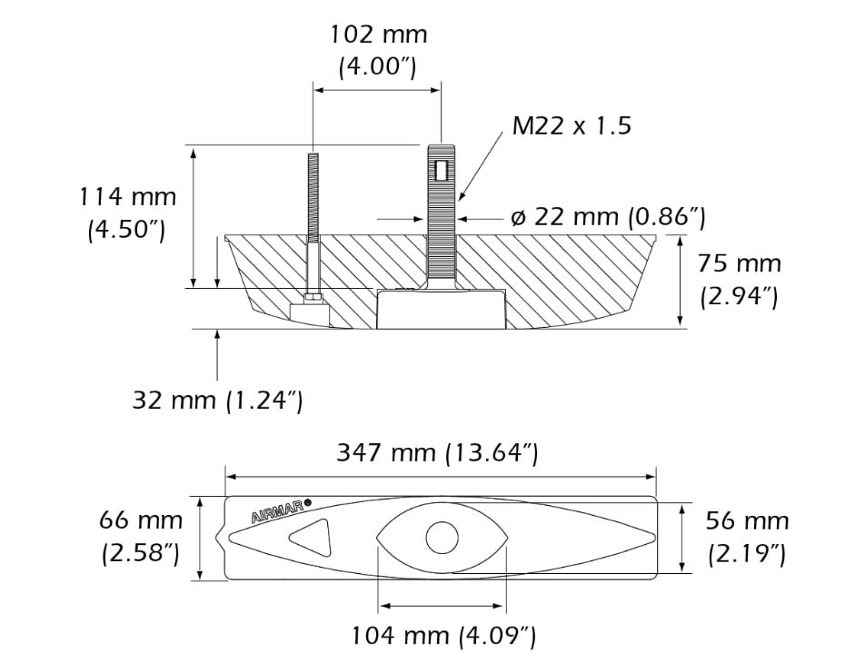 Przetwornik B45 TRIDUCER® pracuje na dwóch częstotliwościach 50/200 kHz, do montażu w kadłubie. Pomiar temperatury i głębokości.