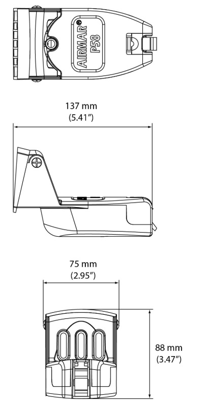Przetwornik P58 TRIDUCER® pracuje na dwóch częstotliwościach 50/200 kHz, do montażu na pawęży. Pomiar temperatury, głębokości i prędkości.
